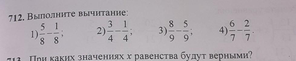 8/5-8/1=8/4 4/3- 4/1=4/2 9/8-9/5=9/3 7/6-7/2=7/4 точно дурыс точно правилно