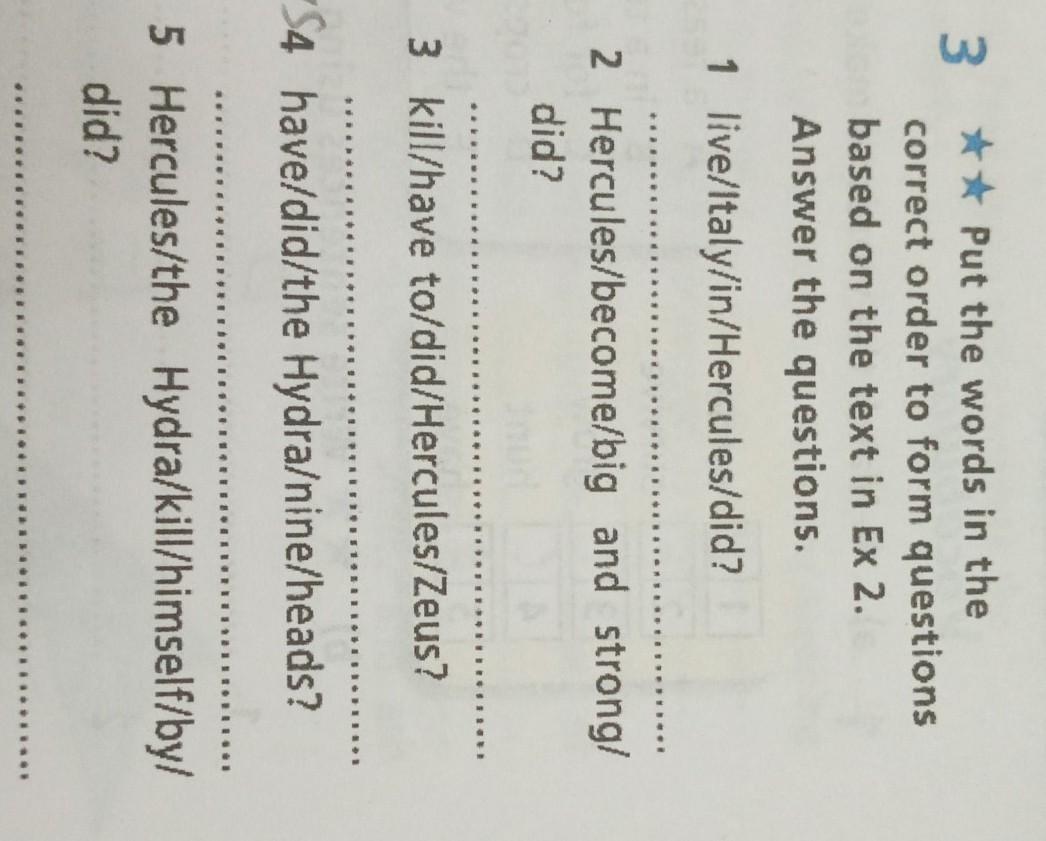 Put the world in the correct order to form questions based on text in Ex.2 Answer the questions.