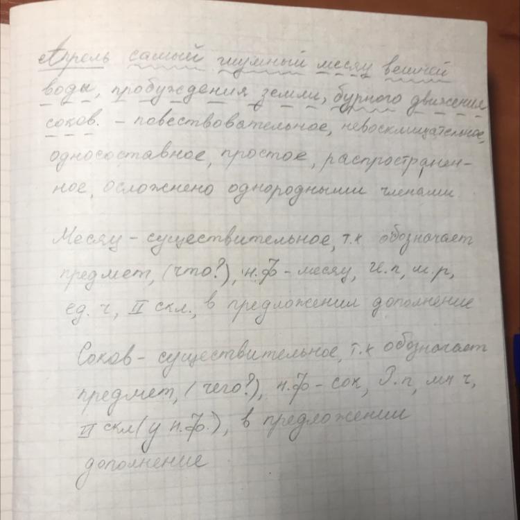 1. Выпишите предложение, расставьте знаки препинания, начертите схемы, выполните синтаксический разбор 2. Выполните морфологический разбор существительных "месяц", "соков". Апрель самый шумный месяц вешней воды пробуждения земли бурного движения соков.