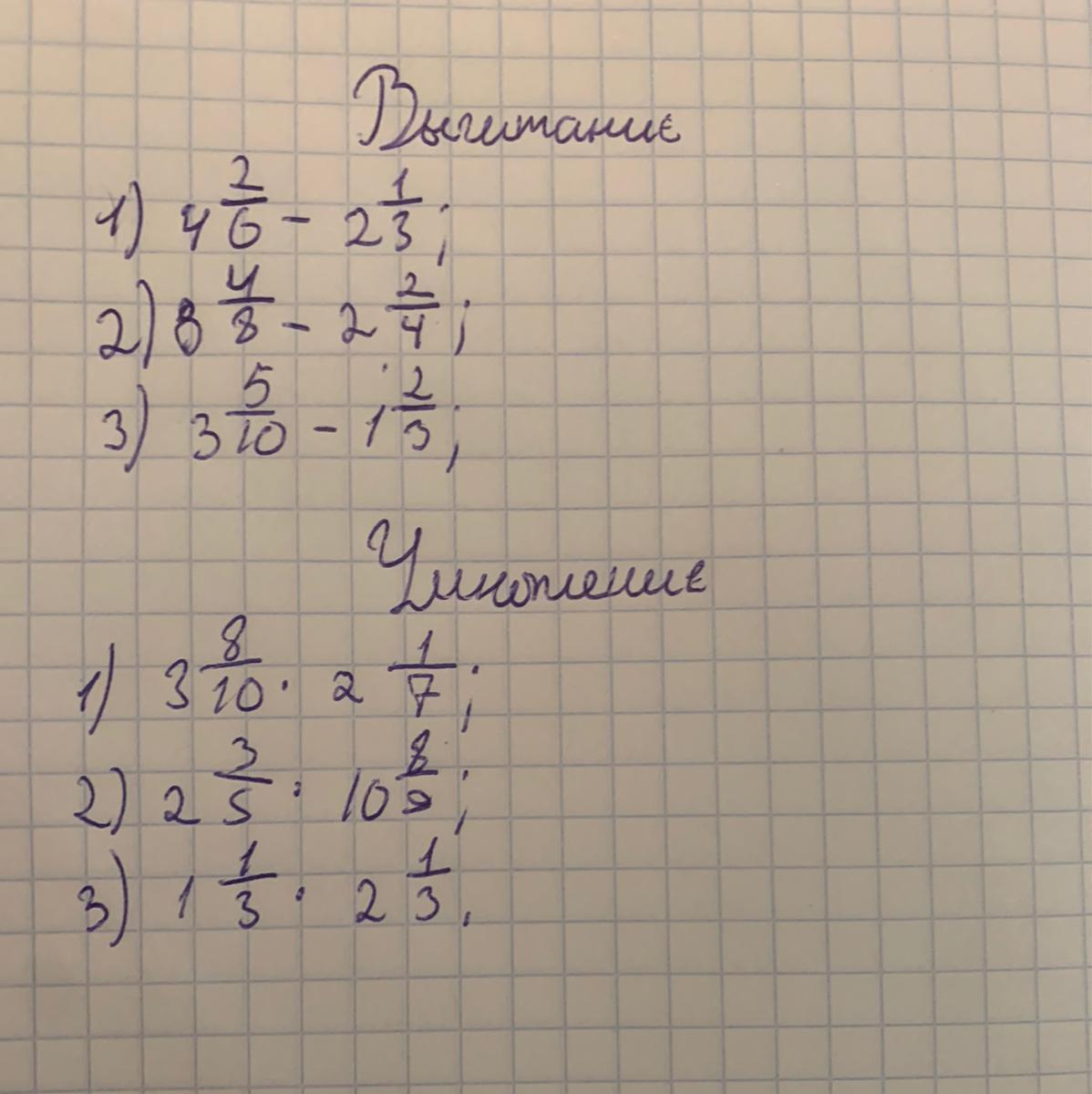 3 на вычитание смешанных чисел и 3 на умножение смешанных чисел