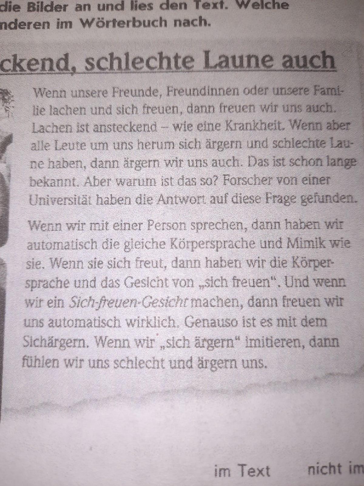 Когда наши друзья или родные смеются и счастливы,мы тоже счастливы. Смех заразен-как болезнь,но если все вокруг рассержены и в плохом настроении,то мы тоже злимся. Это известно давно. Но почему так? Иследователи из университета нашли ответ на этот вопрос. Когда мы разговариваем с человеком,у нас автоматически получается тот же язык тела,выражение лица, что и у него. Когда он счастлив,тогда у нас язык тела и лицо "счастливое". А когда мы делаем счастливое лицо,тогда мы автоматически становимся действительно счастливыми. Тоже самое и с гневом. Когда мы гневаемся "подражайте,тогда мы чувствуем себя плохо и сердимся".