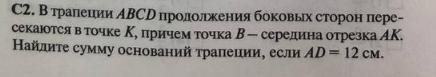 Так как В середина АК и ВС||AD,то ВС средняя линия следовательно ΔАКD⇒BC=1/2AD=6см