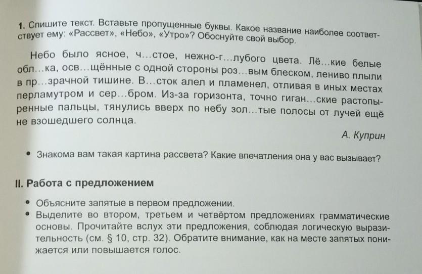 Небо было ясное, чИстое, нежно-гОлубого цвета. Легкие белые облАка, освЕщенные с одной стороны розОвым блеском, лениво плыли в прОзрачной тишине. ВОсток алел и пламенел, отливая в иных местах перламутром и серЕбром. Из-за горизонта, точно гиганТские растопыренные пальцы, тянулись вверх по небу зОлотые полосы от лучей ещё не взошедшего солнца.