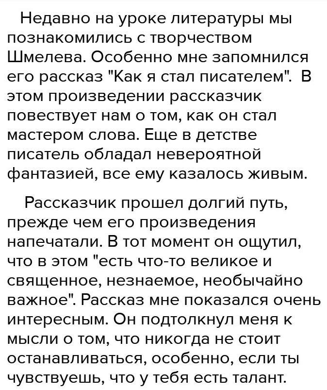 написать отзыв на рассказ Шмелева как я стал писателем