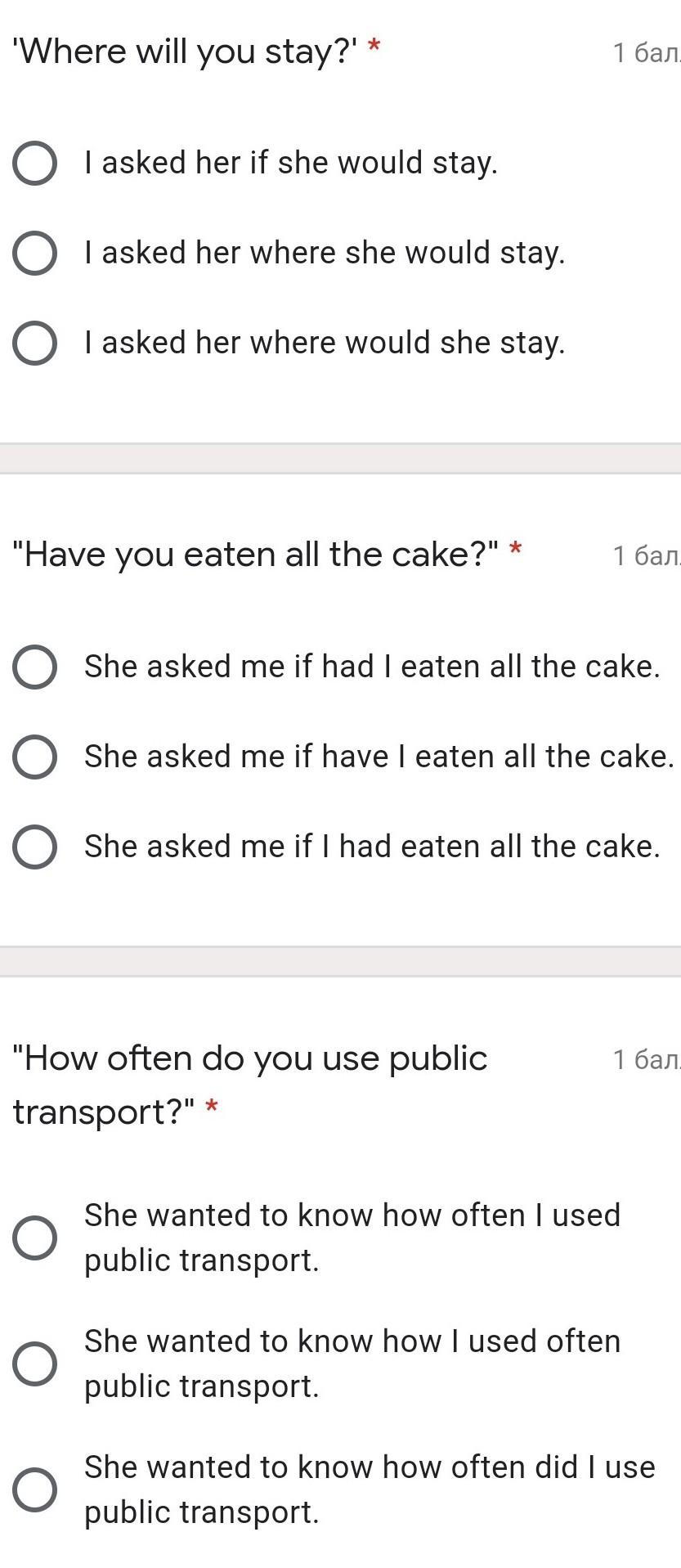 2. She asked me if I had eaten all the cake.