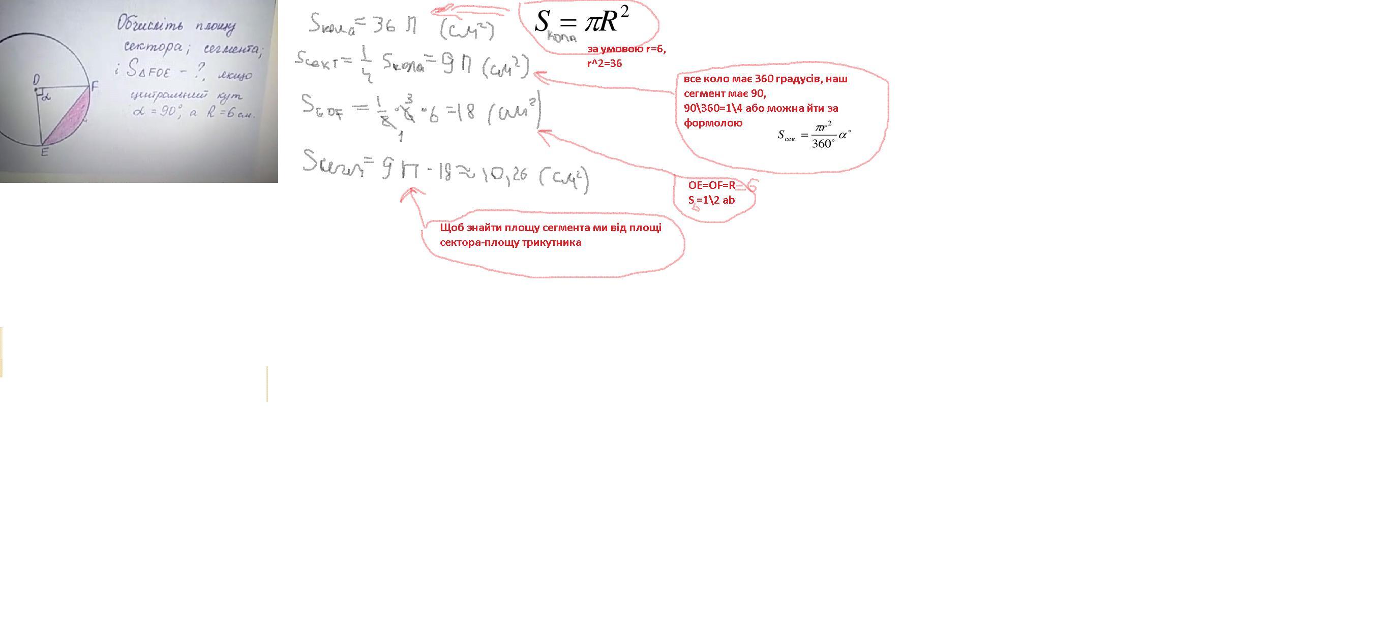 Sсектр=πR^2/360 *90