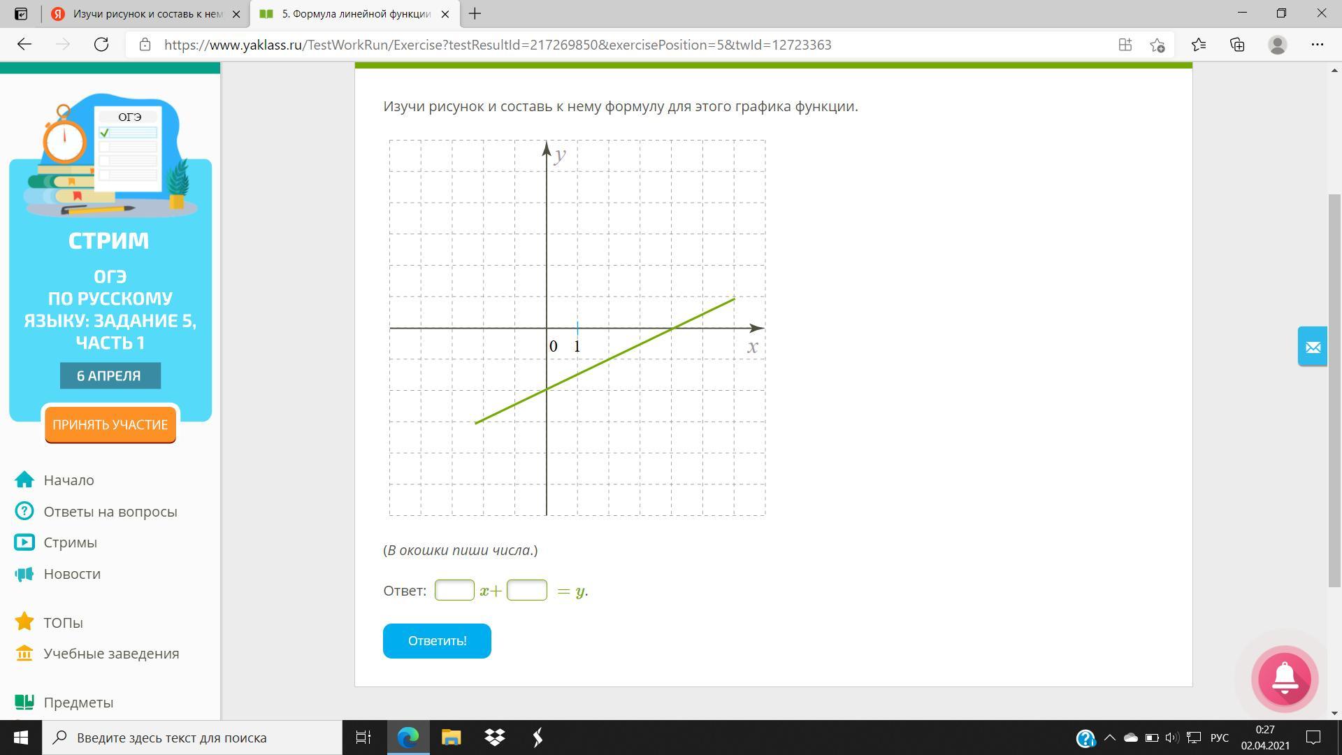 принадлежат прямой у=кх+b, Найдем к и b, подставив эти точки в уравнение прямой и решив полученную систему.