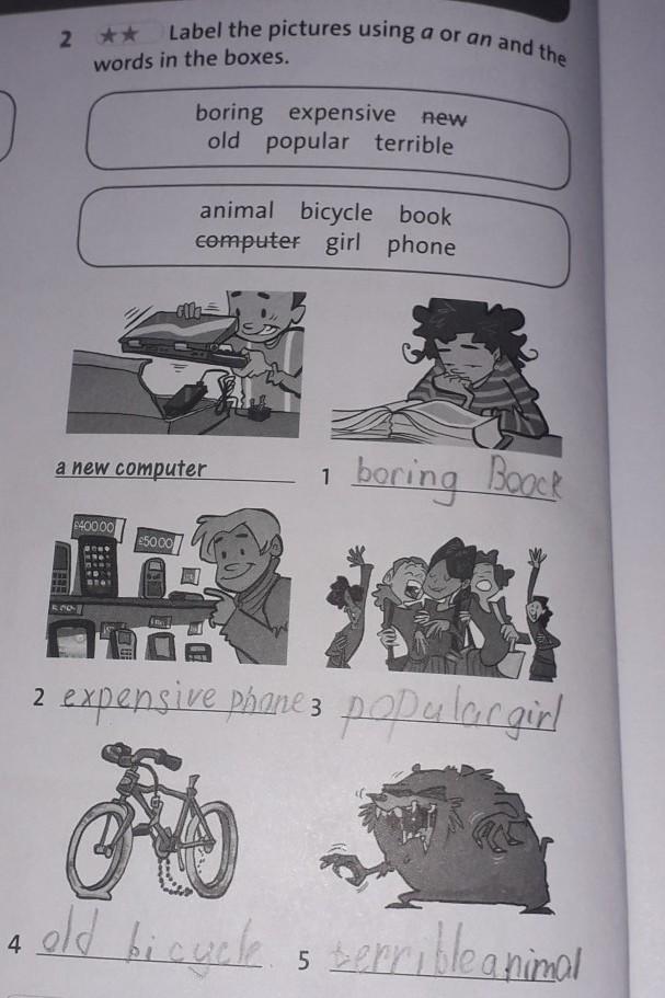 Артикль+ прилагательное (верхняя рамочка) + существительное (нижняя рамочка)