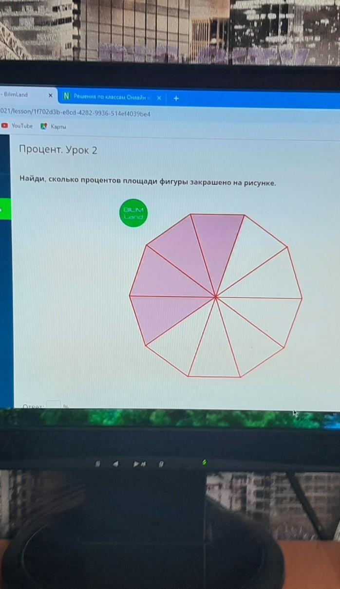 В рисунке в общем 10 частей, 4 из них закрашены. Теперь возмем что 10 это 100%, а 4 это х%: