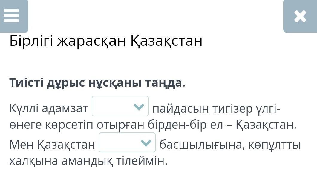 Тиісті дұрыс нұсқаны таңда.
