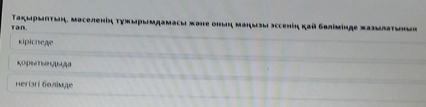 Тақырыптың, мәселенің тұжырымдамасы және оның маңызы эссенің қай бөлімінде жазылатынын