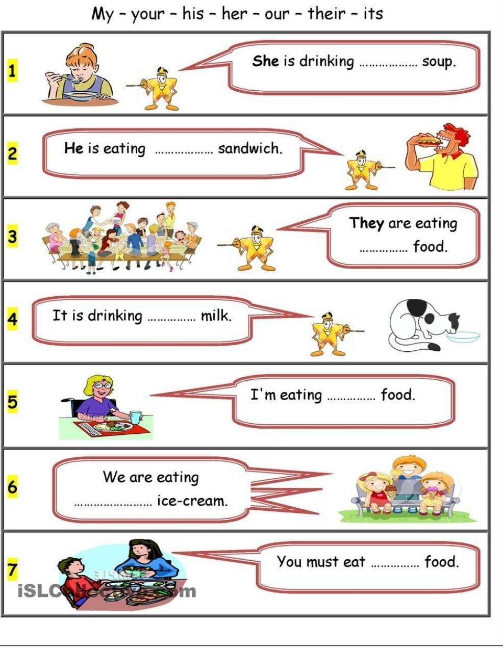 Сверху написаны притяжательные местоимения, их нужно написать в соответствующие места