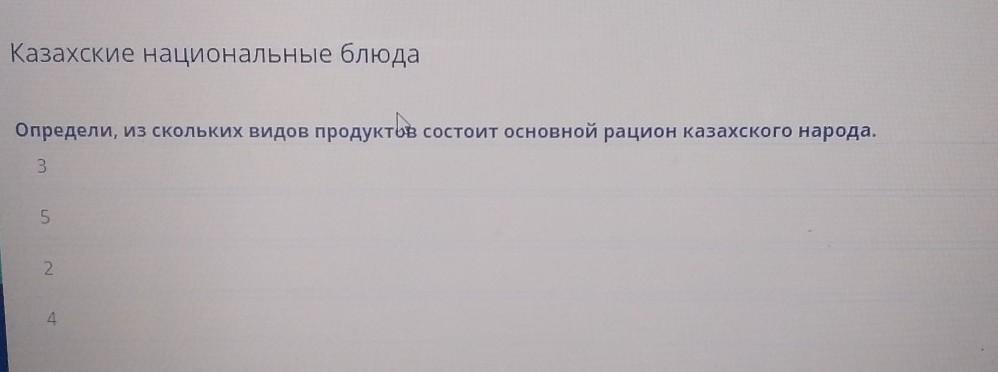 Определи, из скольких видов продуктов состоит основной рацион казахского народа.