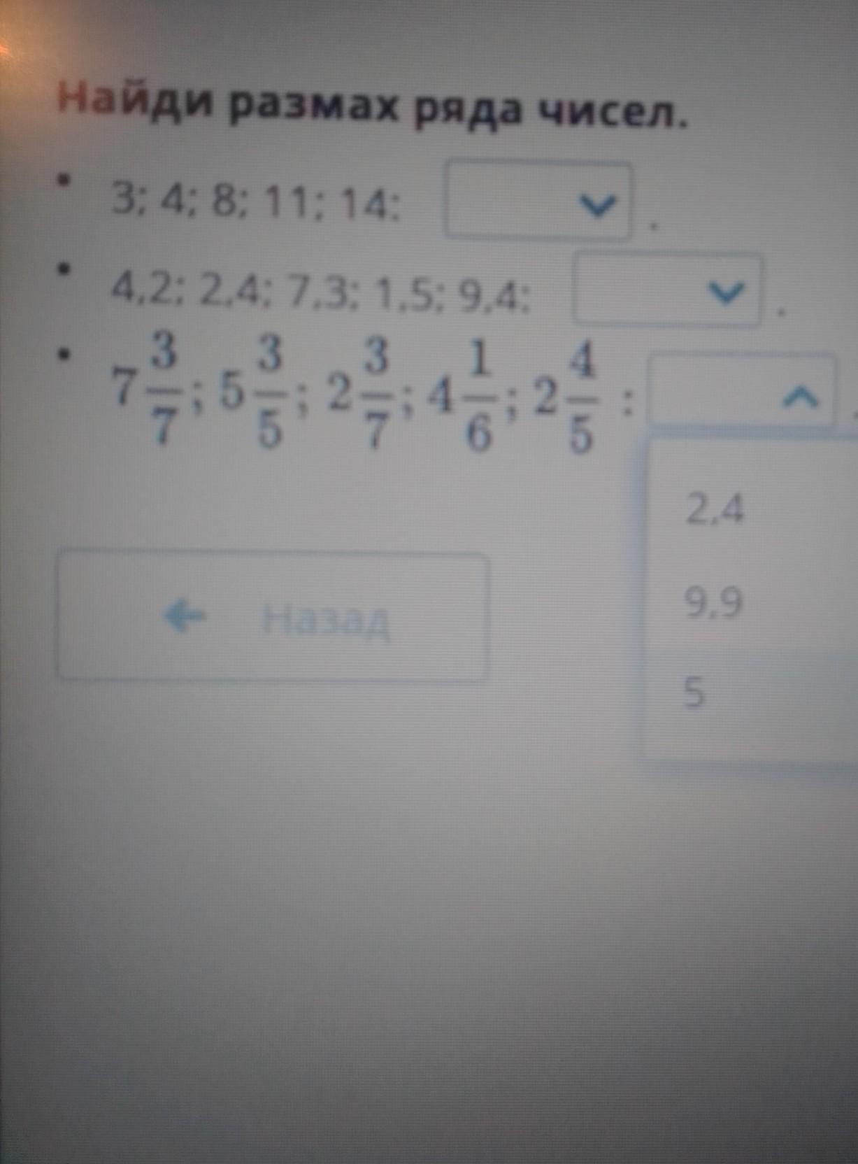 Ряд чисел: 7 3/7; 5 3/5; 2 3/7; 4 1/6; 2 4/5.