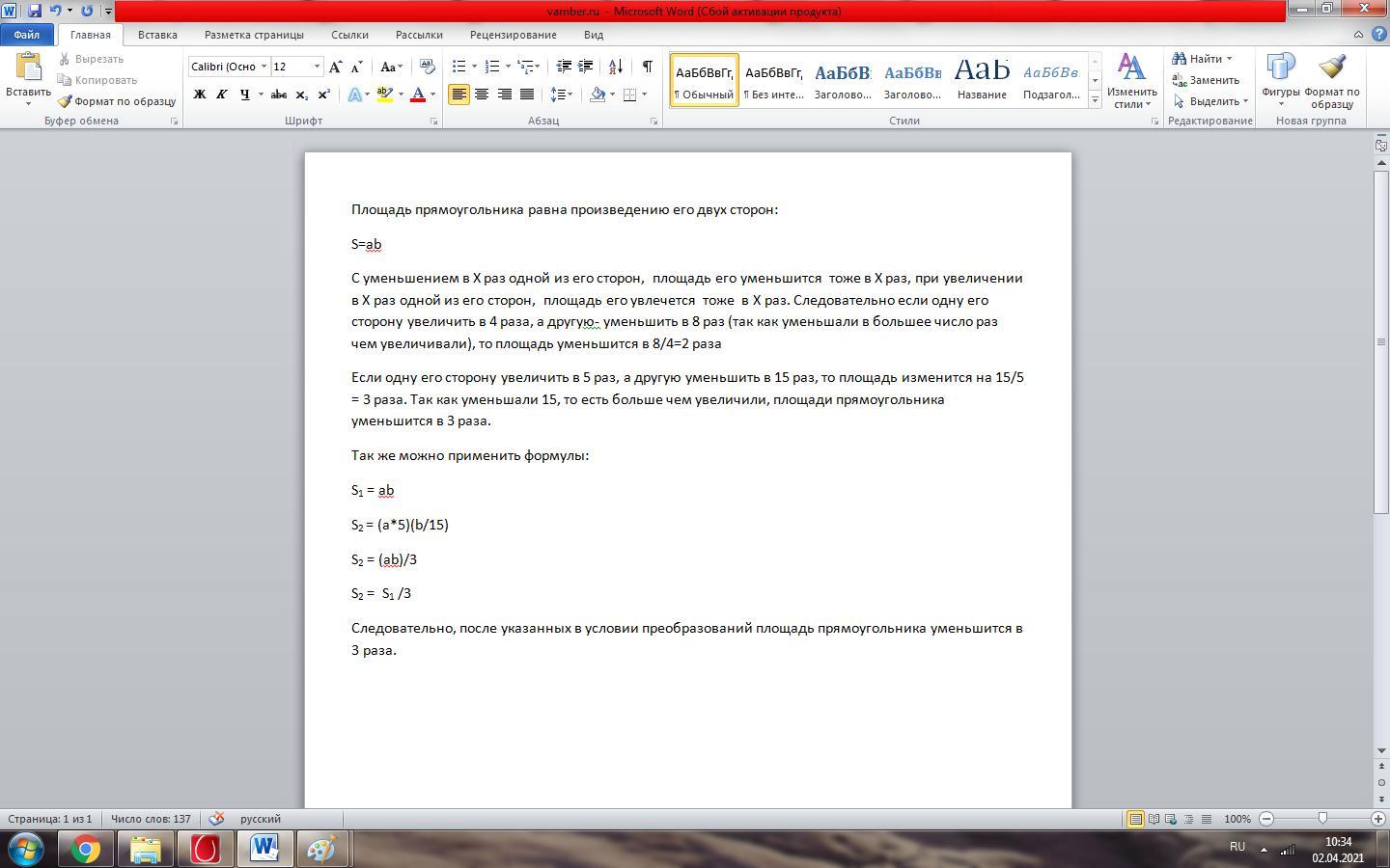 Як зміниться площа прямокутника, якщо одну сторону збільшити у 5
