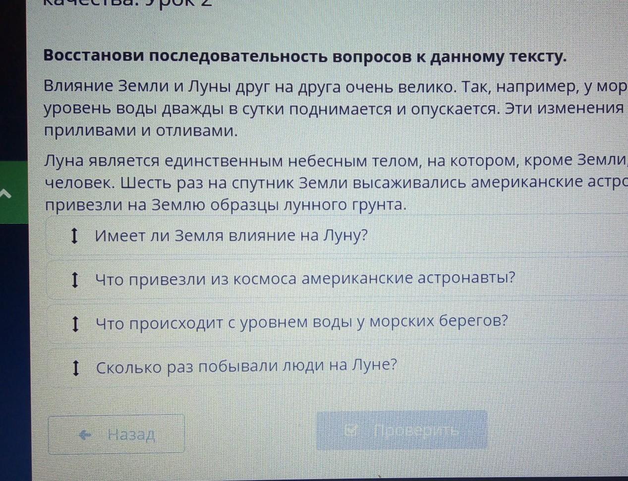 Восстанови последовательность вопросов к данному тексту.