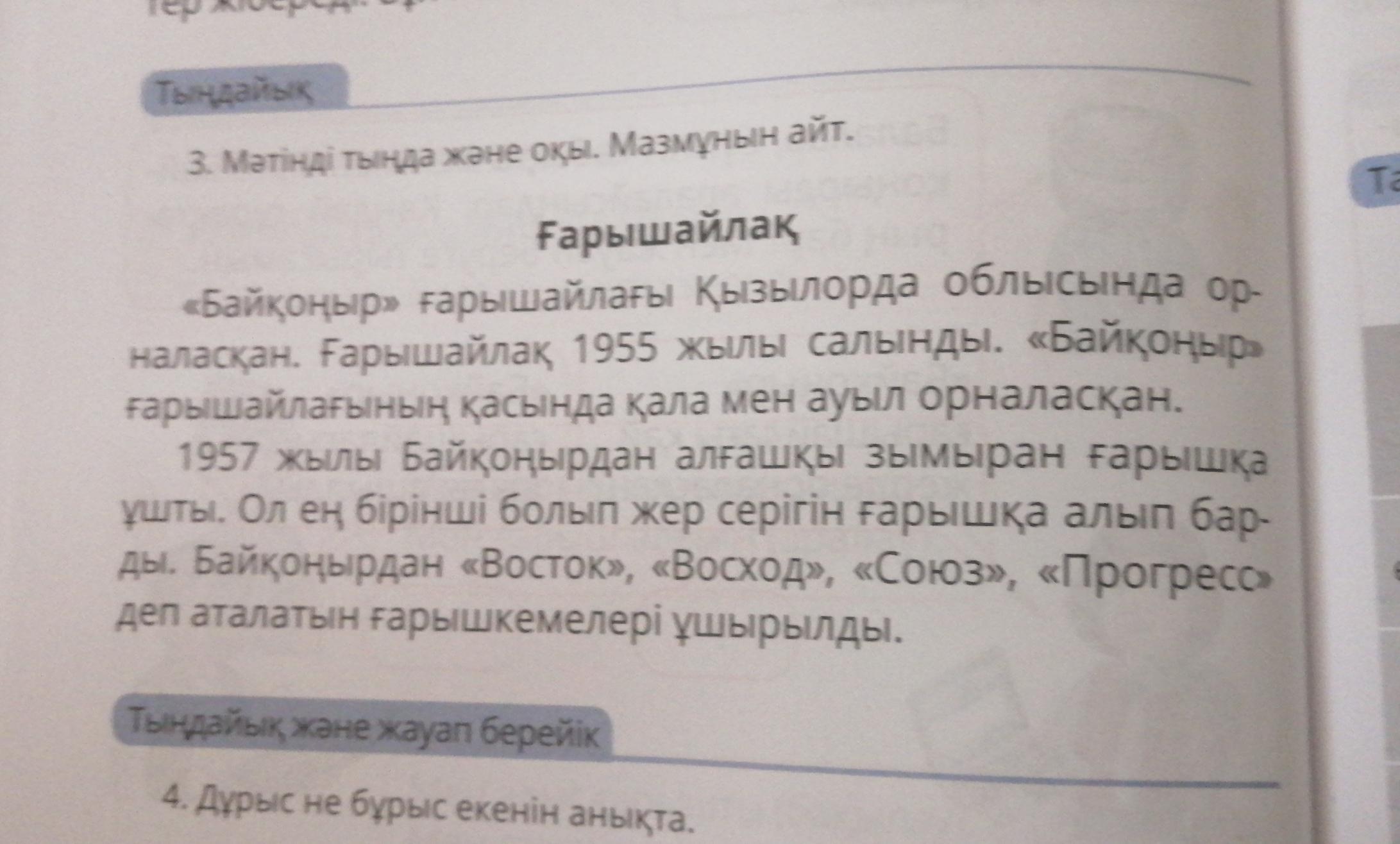 В 1957 году с Байконура была запущена первая ракетка. он первый запустил спутник в космос.С Байконура <<Восток>>, <<Восход>>, <<Союз>>, <<Прогресс>> были запущены так называемые космические корабли.