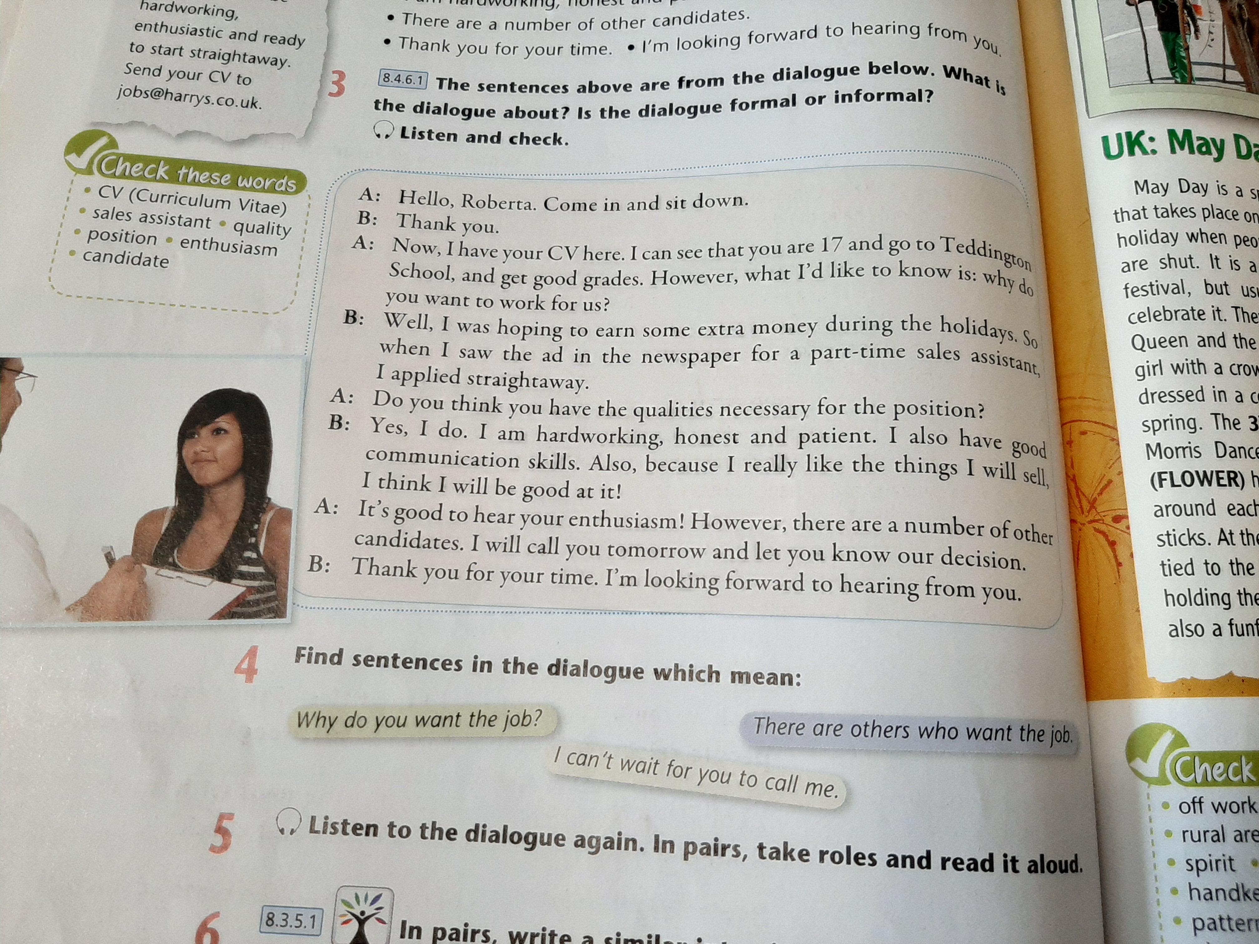 find sentences in the dialogue which mean: 1. Why do you want the job? 2. I can't wait for you to call me. 3. There are others who want the job.