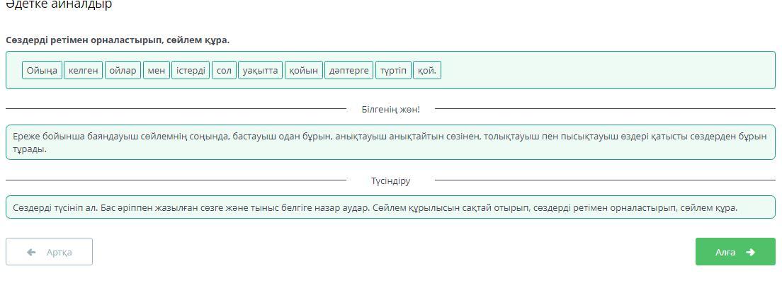 Сөздерді ретімен орналастырып, сөйлем құра.