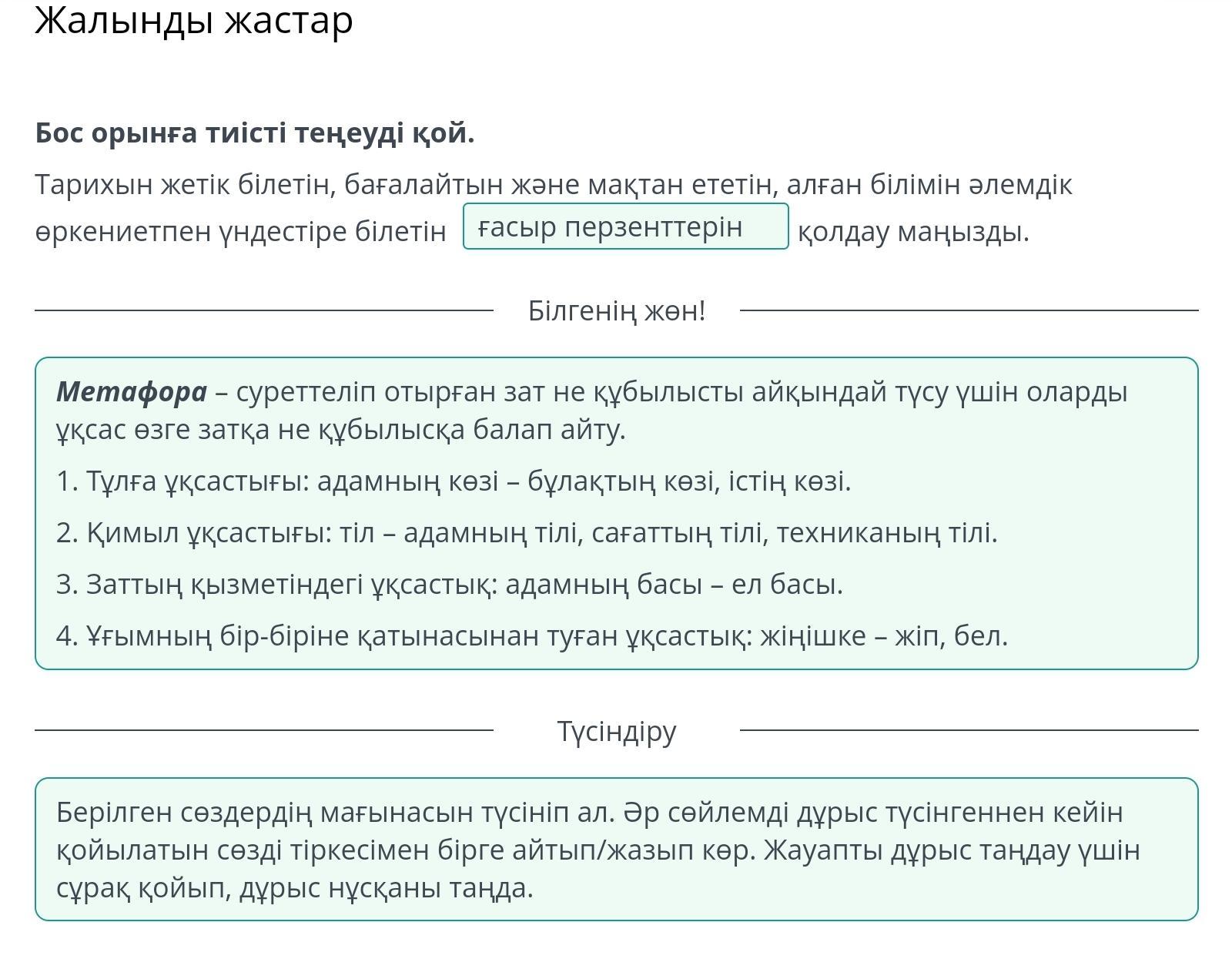 Тарихын жетік білетін, бағалайтын және мақтан ететін, алған білімін әлемдік өркениетпен үндестіре білетін
