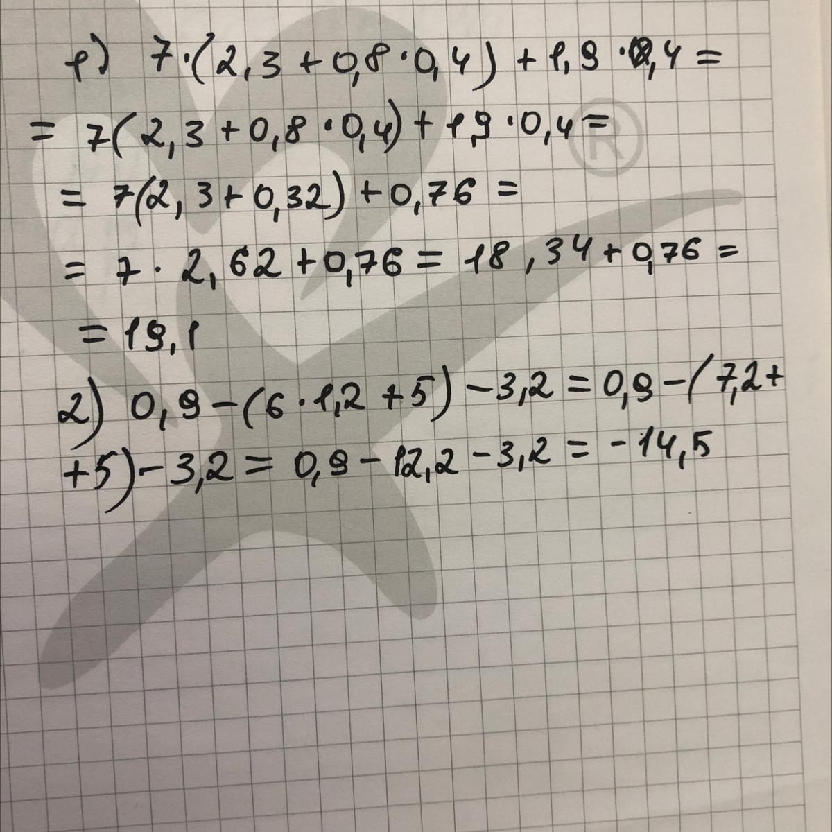 1) 7× (2,3 +0,8х) + 1,9х при х = 0,4;