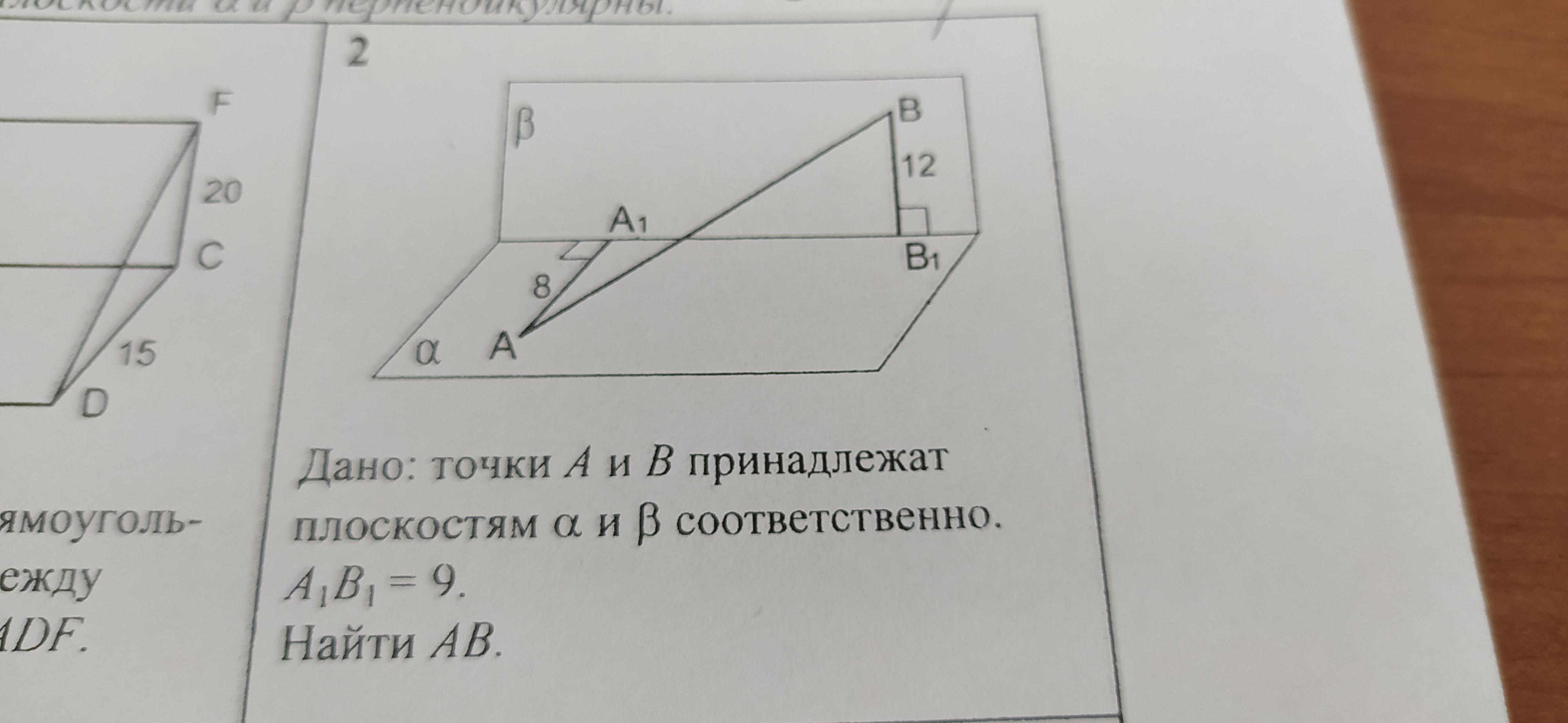 Дано:точки А и В принадлежат плоскостям альфа и бетта соответственно. А1В1=9. Найти АВ.