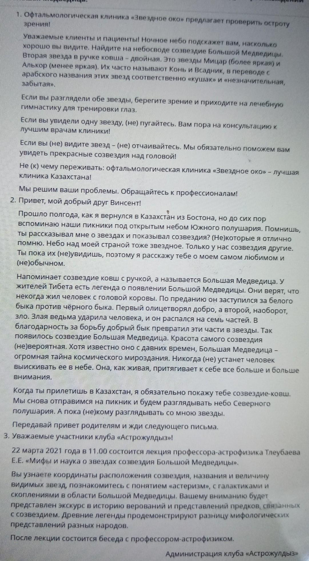 Прочитай текст. Укажи, в каком фрагменте текста можно найти легенду о происхождении созвездия