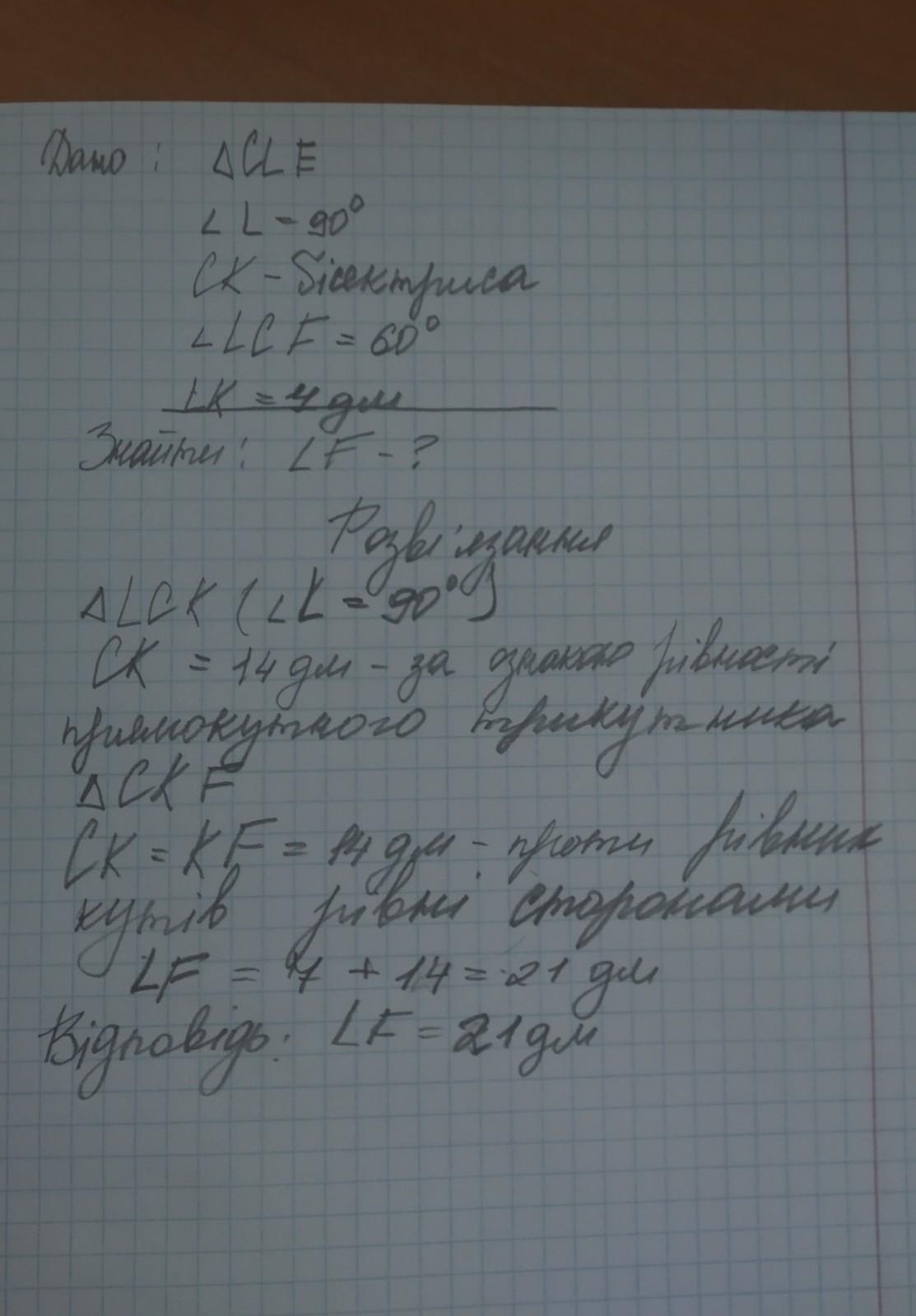У прямокутному трикутнику CLF ∠L=90° ∠LCF=60°