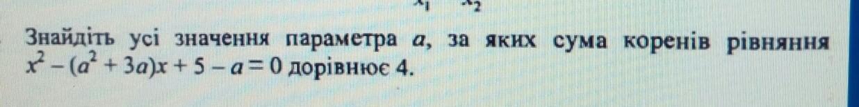 1. Знайдіть усі значення параметра а, за яких сума коренів рівняння