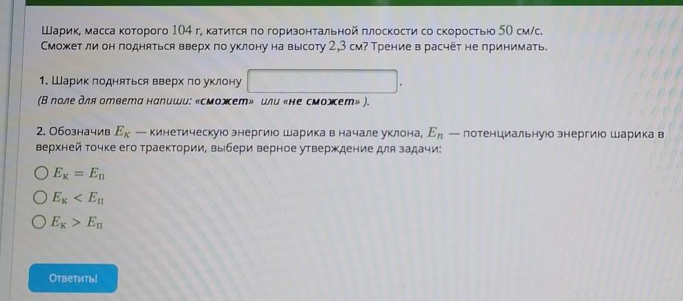 Eп = m·g·h = 0,104·9,8·0,023 ≈ 23 мДж