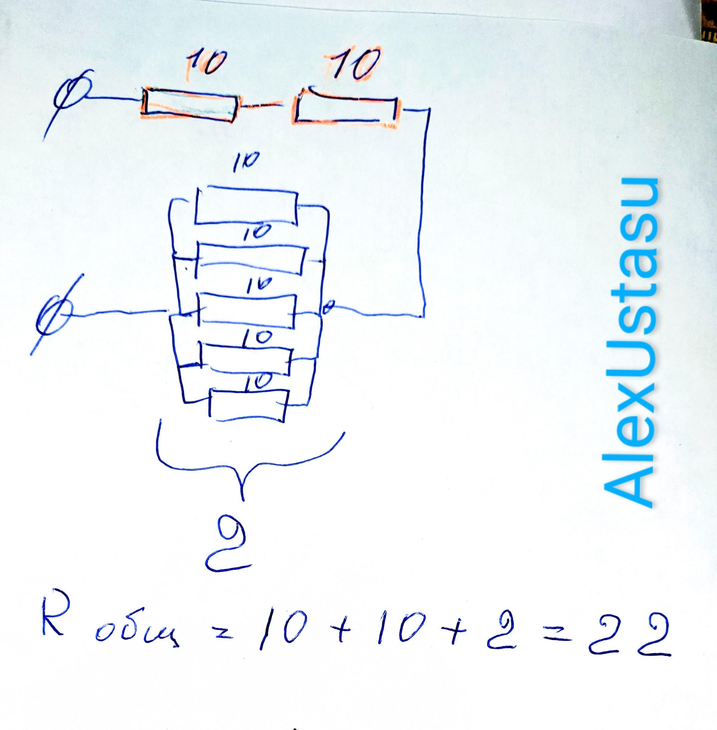 Для Rобщ=22 Ом. потребуется 7 резисторов 10 Ом.