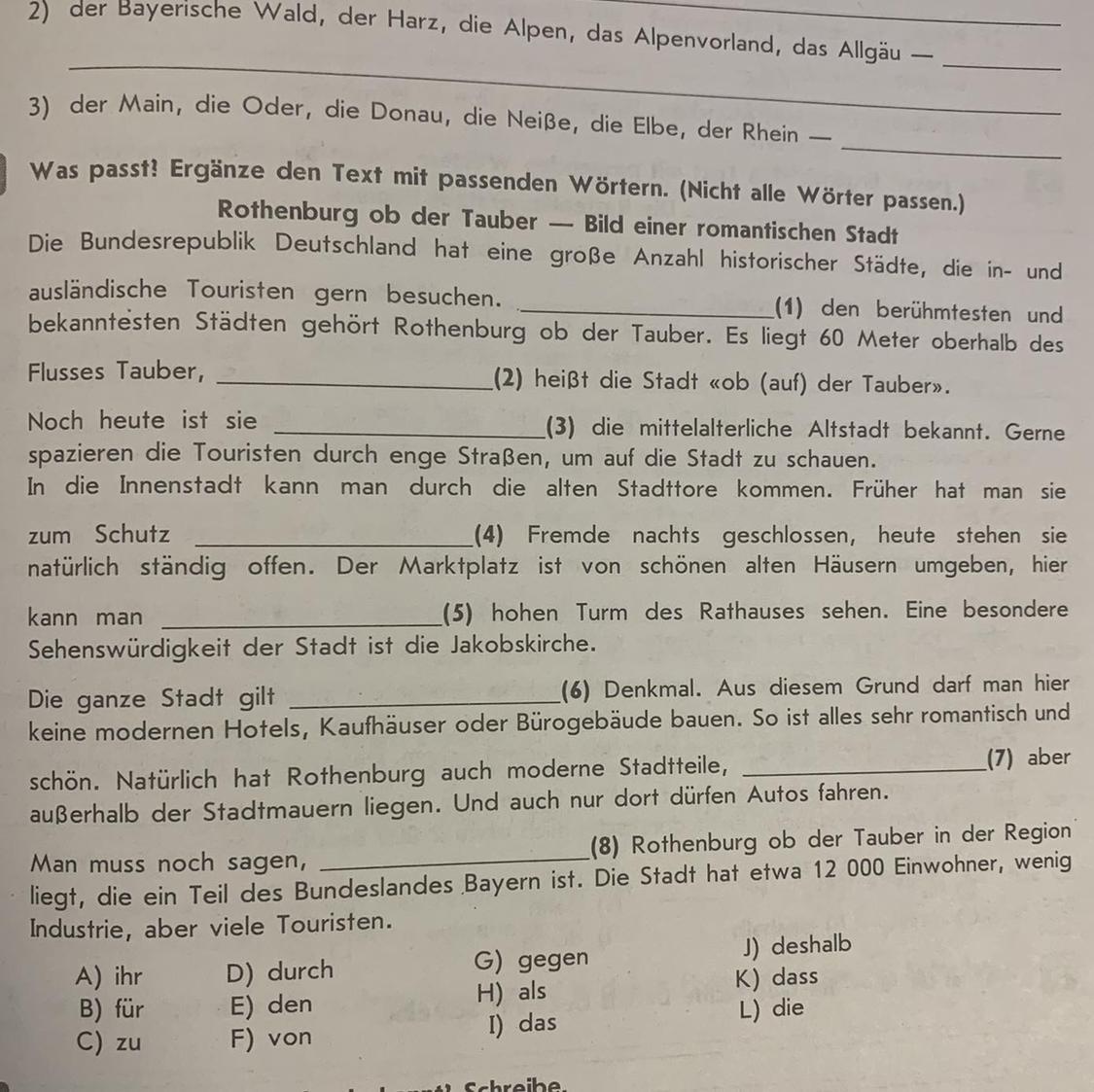 Лишние варианты A) ihr D) durch F) von I) das
