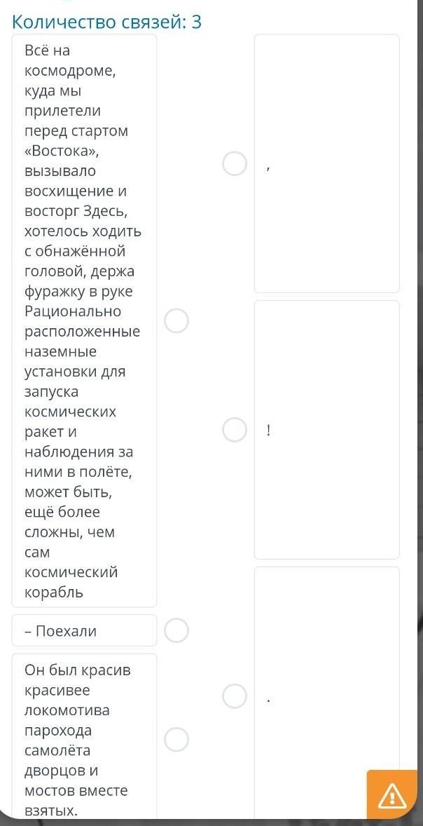 Соедини фрагмент текста с пропущенным знаком препинания.