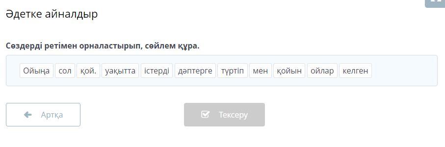 Сөздерді ретімен орналастырып, сөйлем құра.