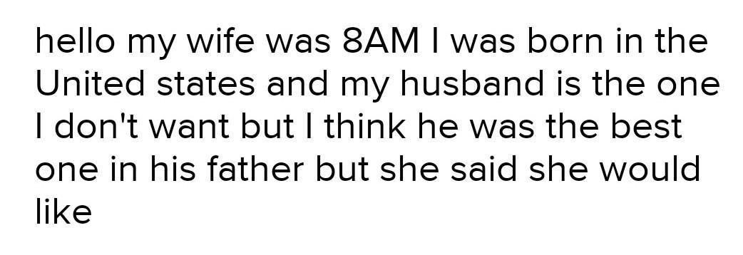 hello my wife was 8AM I was born in the United states and my husband is the one I don't want but I think he was the best one in his father but she said she would like