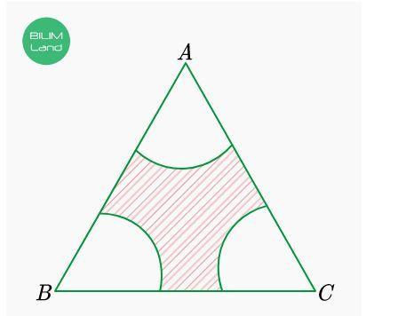 На рисунке сторона равностороннего треугольника ABC равна 12 см, а радиус сектора равен 2 см. Найди площадь заштрихованной фигуры на рисунке.
