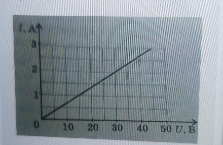 На малюнку зображений графік залежності сили струму в провіднику від напруги на кінцях цього провідника. Опір цього провідника становить: