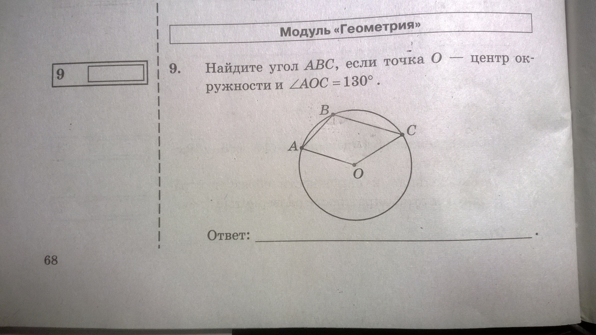 Дуга Авс равна углу аос, так как он центральный значит дуга ас равно 360-130=230, а угол авс будет равен половине дуги ас так так он вписанный то есть 230:2=115 градусов