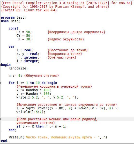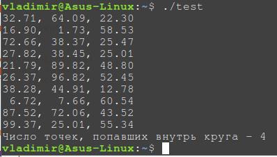 от 0 до 100. Определить и сколько точек попало в круг. Использовать методпроцедуру