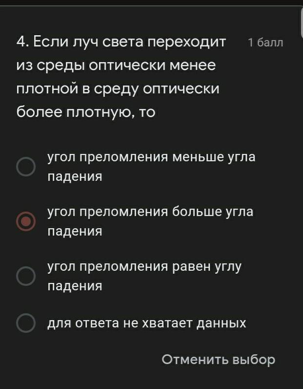 угол предамления равен углу падения