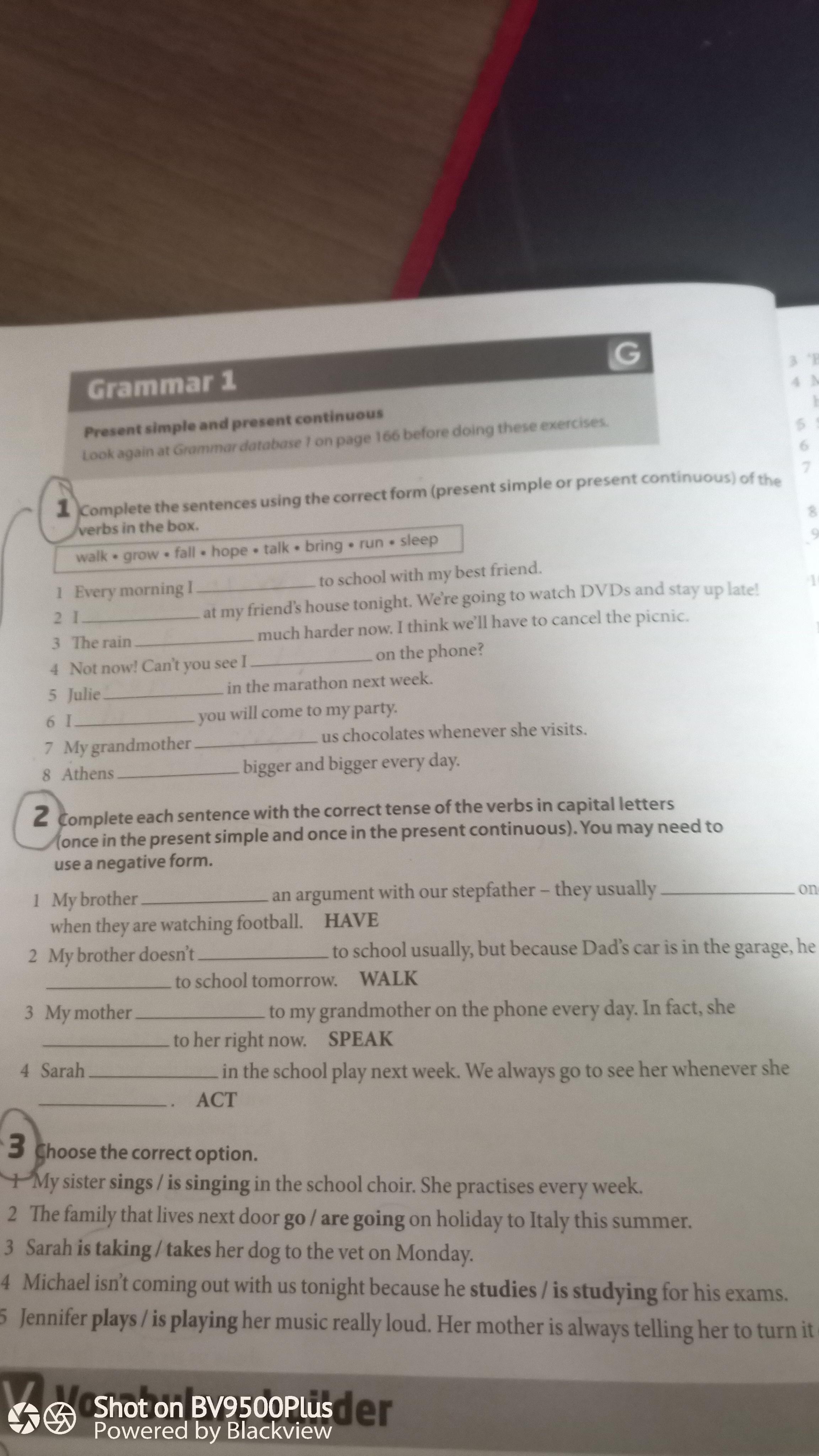 2. My brother doesn't walk to school usually, but because Dad's car is in the garage, he is walking to school tomorrow.