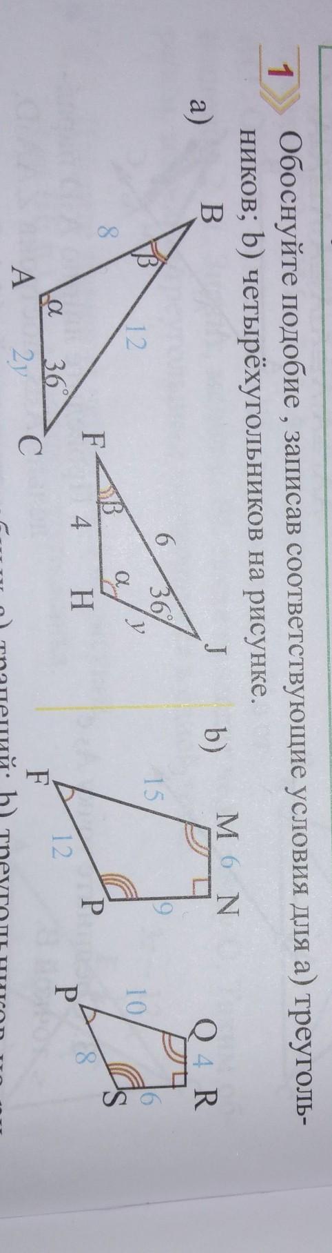 b) Подобность четырёхугольников можно узнать по различным способам. Как мы видим на рисунке, FMNP ~ PQRS. Но, как мы это поняли?