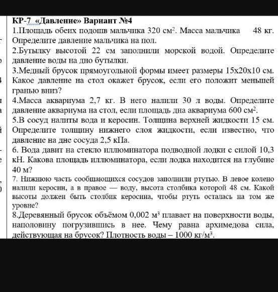РЕШЕНИЕ:p=F/S;F=mg;m=pV;S=15*10=150см²