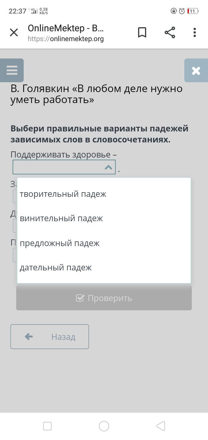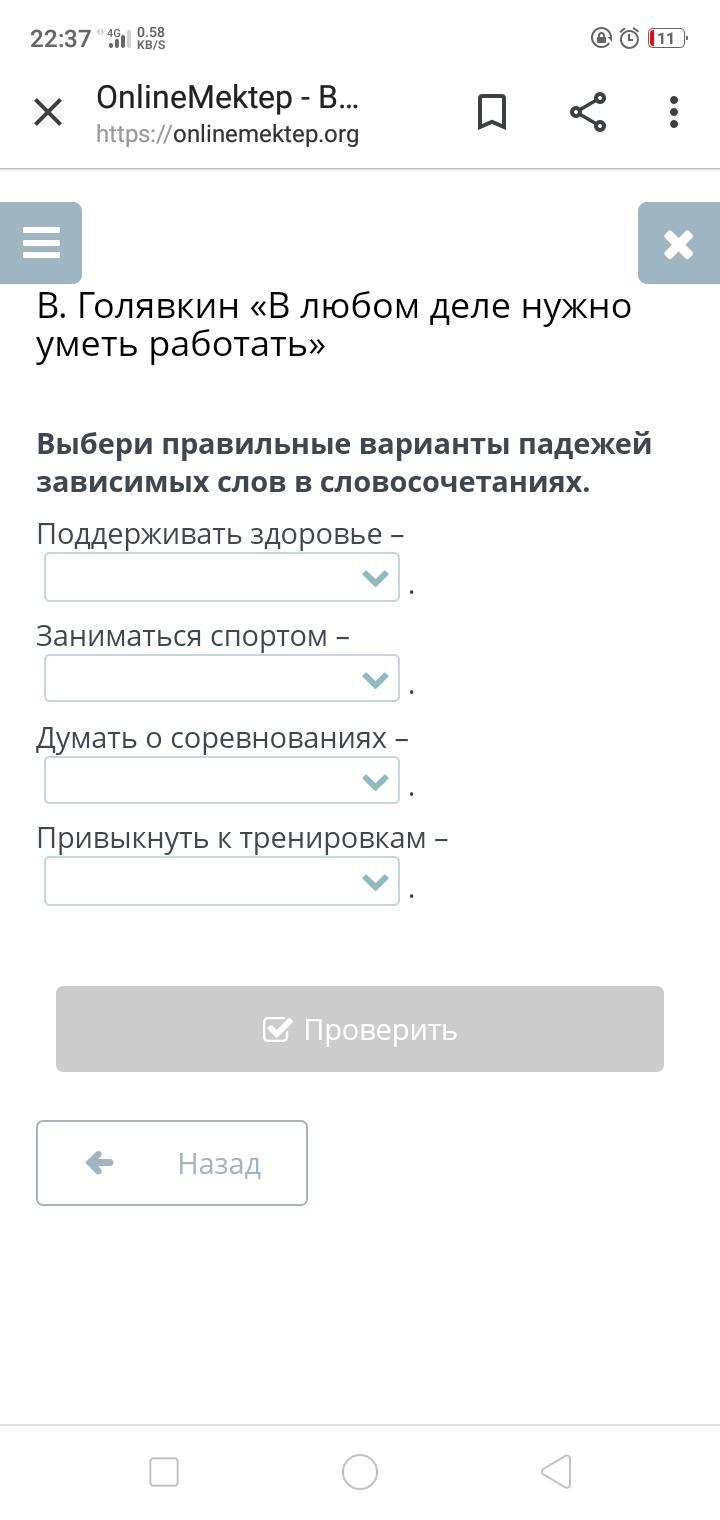 Выбери правильные варианты падежей зависимых слов в словосочетаниях.