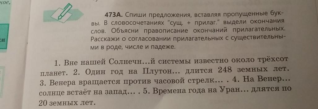 5. Времена года на Уране (2 скл., м.р., ед.ч., П.п.) длятся по 20 земн/ых (мн.ч., Р.п.) лет×(мн.ч., Р.п.).