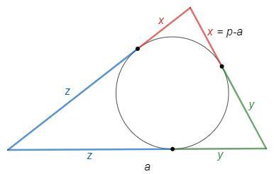 В любом треугольнике точки касания разбивают периметр на пары равных отрезков x, y, z