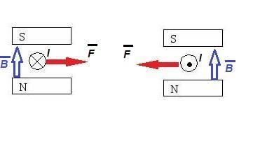 На рисунке изображен проводник с током. Определить направление силы Ампера
