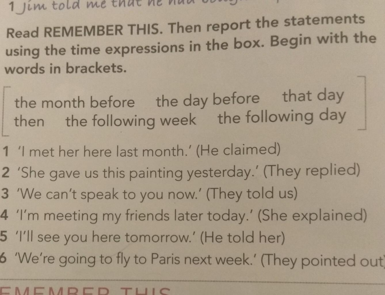6. They pointed out that they were going to fly to Paris the following week.
