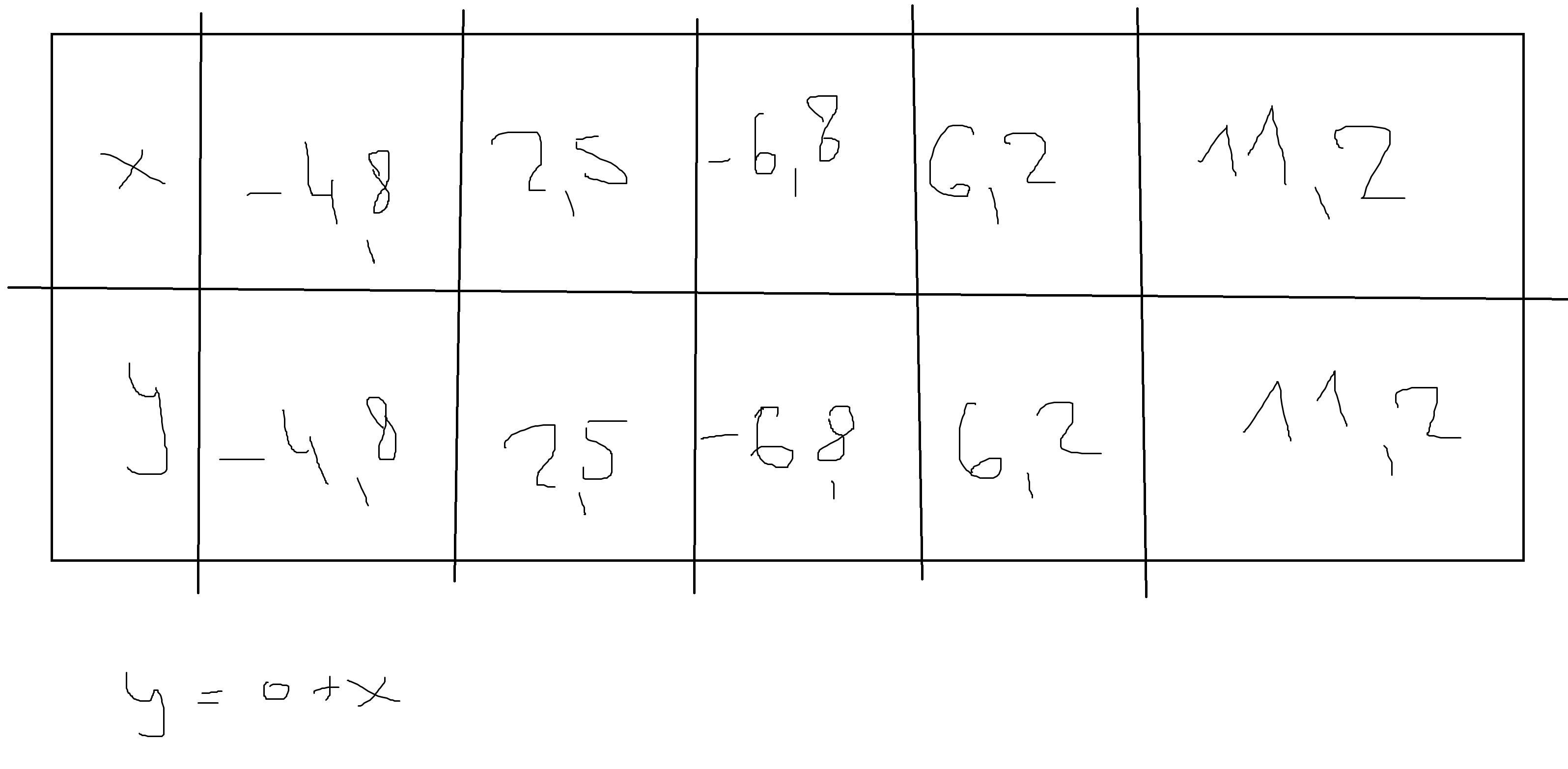 Используя формулу y=0+x, заполни пять клеток таблицы.