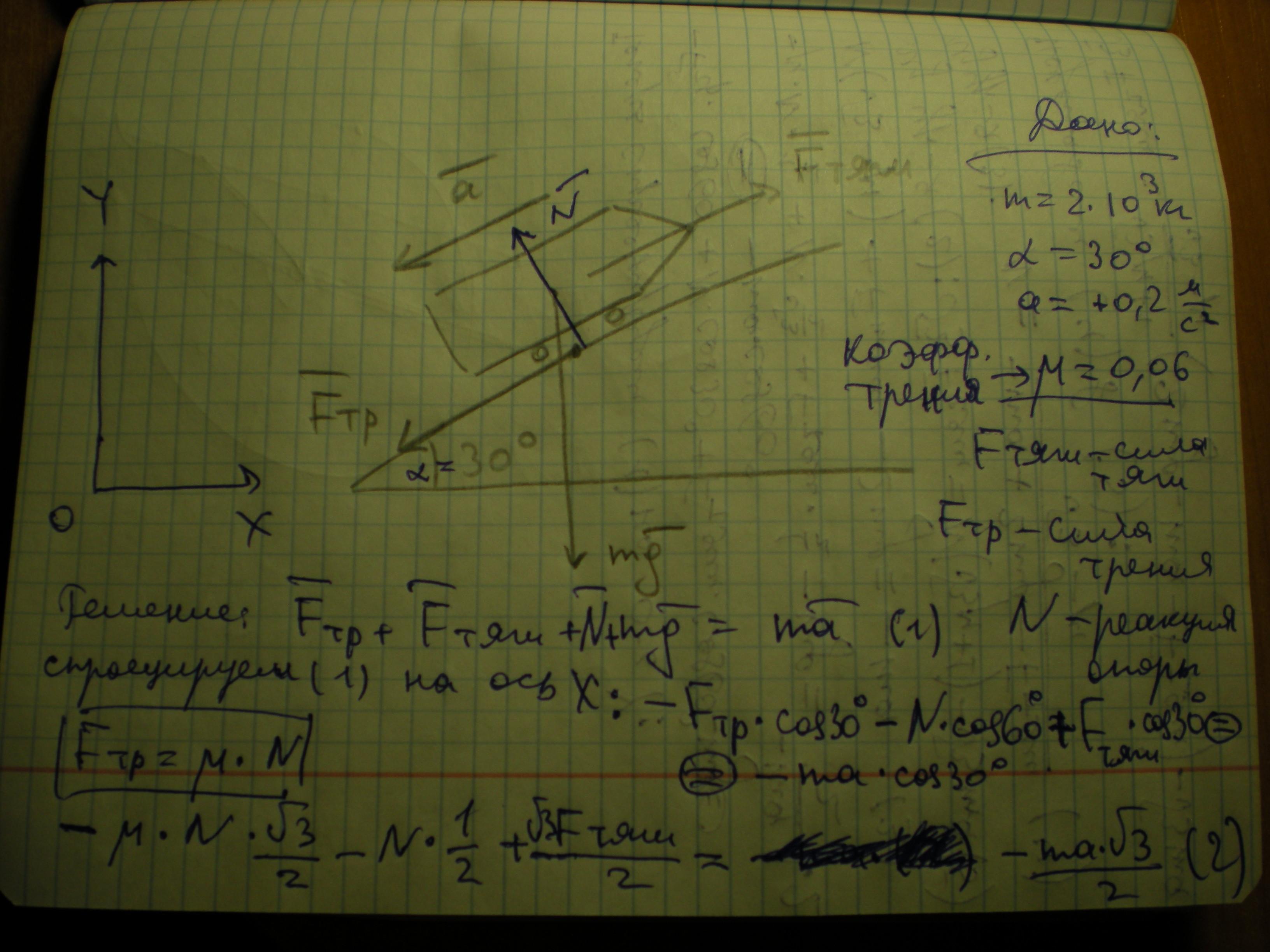 Автомобіль масою 2 т піднімається на гору під кутом 30 о . Його